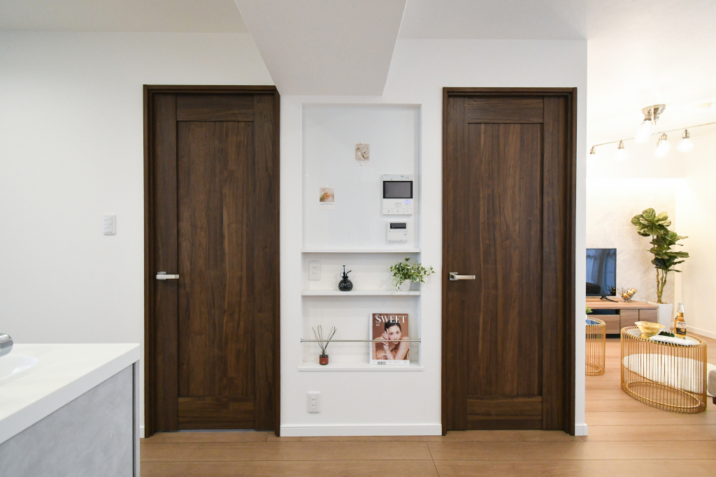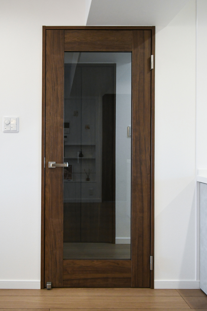 ドア:Panasonic ベリティス ウォールナット色 リビングドアMC型透明ガラス