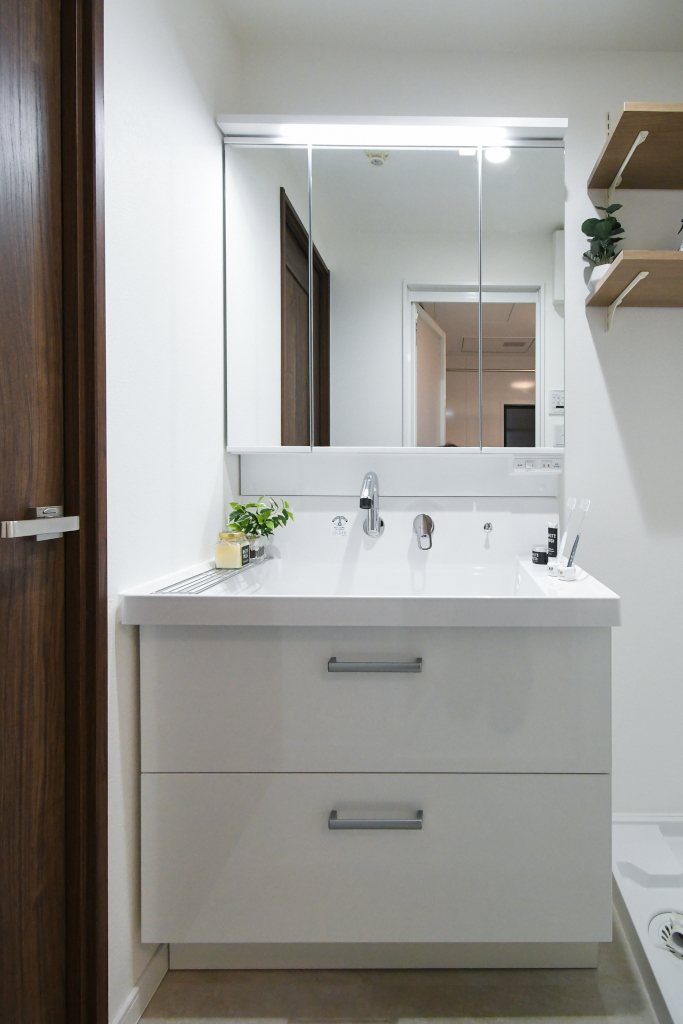 洗面化粧台:TOTO ピアラ90cm 2段引き出し 扉グロスホワイト色